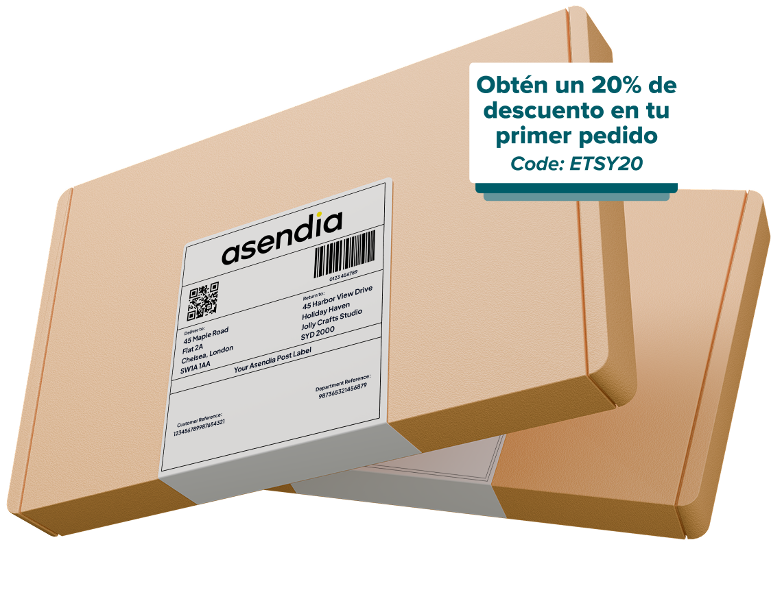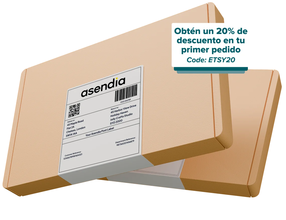 Se aplica un descuento del 20% al primer pedido realizado en nuestra plataforma "SendNow by Asendia" por vendedores de Etsy que cumplan los requisitos (profesionales, excluyendo marketplaces, o consumidores que vendan en la plataforma Etsy y que Etsy haya orientado a nuestra plataforma) sobre el precio cotizado únicamente para los servicios logísticos (excluyendo impuestos, aranceles, cargos administrativos, costes, sanciones y multas). El descuento máximo es de 10 EUR por envío. Esta promoción es temporal y se aplica hasta el 15 de abril de 2026. Esta promoción puede modificarse, suspenderse o revocarse en cualquier momento sin previo aviso, excepto para pedidos ya procesados, pagados y aceptados por nosotros según los Términos y Condiciones de nuestro Sitio. La oferta está sujeta al pleno cumplimiento de nuestros Términos y Condiciones aplicables a cualquier servicio solicitado.